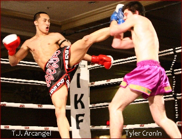 Black had originally put forward Rick Erlec to take on the defending IKF West Coast Champion the very crafty T.J. Arcangel (Left) of San Francisco, California. However, as of today, this match-up had to be changed. Due to personal medical issues with Erlec's father, he was forced to pull out of the bout and the IKF fully understood his and trainer Dan Black's decision. Fortunately for T.J. Arcangel, Black was able to replace Erlec with another one of his top contender fighters, Tyler Cronin (Right) of Concord, California, (8-2). As would be expected, long-time veteran trainer of World Champions in Muay Thai and Mixed Martial Arts, Kru Sam Phimsoutham, who is always quiet and confident, doesn't feel this is a possible. Kru Sam believes T. J. is also destined to become a World Champion We will just have to see! | ||