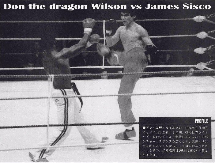 On May 15th, 1999 in Lowell, Massachusetts, USA at 45 years of age, 11 Time Kickboxing WORLD Champion Don "The Dragon" Wilson stepped back into the ring to fight for the vacant IKF Pro FCR Cruiserweight World Title against Dick Kimber for what is still this day, the highest kickboxing purse ever paid, $150,000.00 and some additional training expenses. Kimber swore to everyone that he'd have the fight over before the fifth round. However when the Dragon unloaded on Kimber in round three, Kimber dropped to the mat and referee Dan Stell counted him out on the floor. Kimber never stood during the count and to this date, Kimber never fought again. Having never been challenged for his title, Wilson voluntarily retired it several years later. | ||