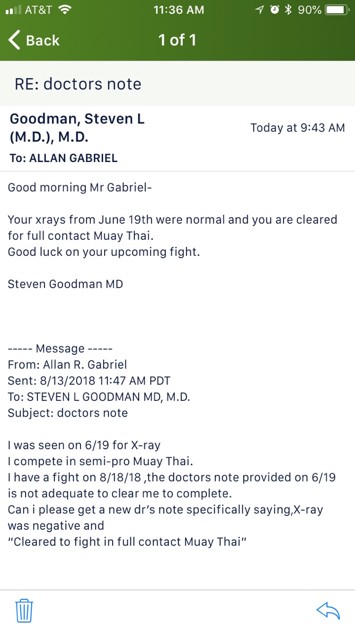 45 day no competition Medical Suspension until October 3, 2018 by Dr. Mitchell