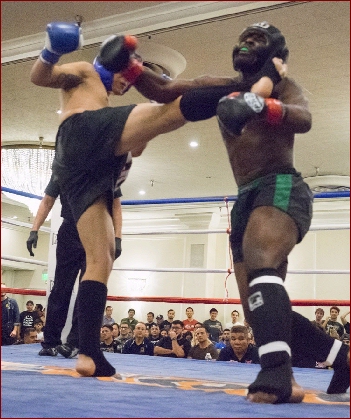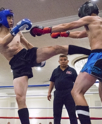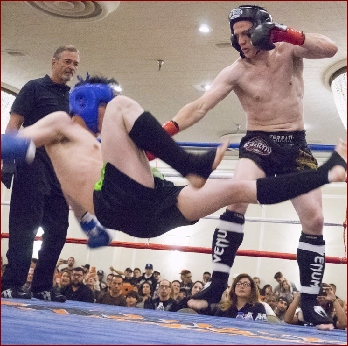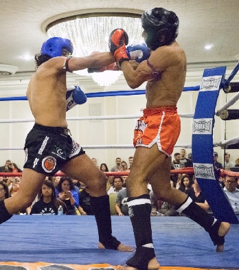 - BOTH FIGHTERS MUST WEAR HEADGEAR AND SHIN PADS