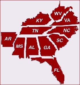 States. Georgia Florida Alabama South Carolina Mississippi Tennessee Kentucky Arkansas