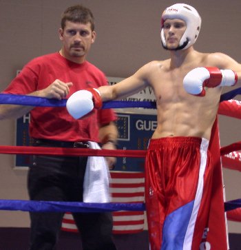 MIDDLEWEIGHT CHAMPION BOUT 5 At the 2002 USA Nationals Russell successfully defended his 2001 National title by defeating Travis Buchlolz of Eau Claire, WI, by unanimous decision 30-27 on all 3 judges cards. Hudson was the 2002 USA Nationals runner up in the super middleweight division. At the Nationals in round one he first defeated Brett Crosby of Clinton, MD by TKO at 1:34 of round 3. In the final he lost to Kevin Engle of St Louis, MO by unanimous decision 29-28, 30-27 & 30-27. Hudson choose to move down in weight for this event since no one else registered in his division. It was probably the best move he's made in his fight career. At this weight he was quick, strong and aggressive and his energy level seemed to never go away. On the other hand, remember who he was up against... Peyton Russell has been around the world in his career and has come home a winner 26 of 30 times. Many thought Russell would be too strong for Hudson but to the surprise of many, Hudson turned out to be the strong one. This was yet another great battle between two warriors with strong hearts and plenty of skill to go to war with. We can't tell you what bout one judge was watching who gave Russell all 5 rounds scoring it 50-45, but the other two judges saw the fight we saw. One judge gave them each 2 rounds and couldn't come to an answer in round 3 giving them both 10 for an ending score of 48-48. The third judge forced himself to a decision and it was the small difference that gave the bout to Russell by majority decision with a score of 48-47 Russell. With the question of the one judges scoring in mind (50-45), do all of you hear what we hear in the echoes of our heads..."Rematch... Rematch..." What a GREAT FIGHT! |