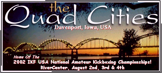 We won't spend too much time right now with the "MANY" words and stories about this years 2002 IKF USA National Amateur Championships at the RiverCenter (Below Left) in Davenport Iowa, USA.