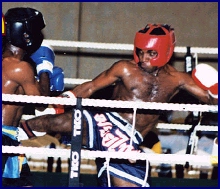 Though Bovell made a valiant effort throughout the bout it was clear that he was out of his element. Whether or not he was affected by the fall over the top rope in the second round is purely speculative at this point. Ibrahim was clearly into his game as he took the fight to Bovell both on the outside and in the clinch. This was brought out in the unanimous decision that Ibrahim was awarded in the fight, 48-47, 50-46 & 49-47 by judges Cuthbert Daniel, Christopher Rock and George Brathwaite. This event was sponsored by TKO Sports, BWIA West Indies Airways, Wing & Ting Restaurant and Bar, Sports & Games (B'dos) Ltd., All About Attitude, Weisers on the Bay, Banks (B'dos) Breweries Ltd. and Gatorade (RMJ Agencies). For more info on this great event please contact Mr. Wayne Quintyne by e-mail at nkl_bds@hotmail.com NOTE: *These bouts were not sanctioned by the IKF due to the fact that the fighters weight spread was too much. To see IKF Required weight spreads (Maximum Separations) click HERE! |