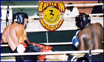The event was sanctioned by the National Kickboxing League of Barbados (NKL) and the International Kickboxing Federation (IKF) and featured international kickboxers from the United States and host country Barbados. From all reports this was certainly the most exciting kickboxing event ever to be staged on the shores of Barbados. Further IKF sanctioned event are scheduled for April, September and December of 2003. Here are the event results; Bout 1: Carrington (Barbados)
