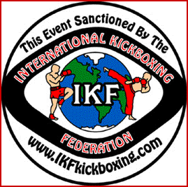 This message is to reply to quite a few of you IKF Web page readers living in Ireland and surrounding areas that have e-mailed us here at the IKF "INTERNATIONAL" Kickboxing Federation" in regards to some events being advertised in Ireland as "IKF" Events. The problems here are first of all, we, the "INTERNATIONAL" Kickboxing Federation did not sanction an event in the town of Tramore, Ireland on January 27th, 2002 at the South's Club promoted by Mr. Billy O'Sullivan. As well, we are not sanctioning an event at the Ringside Club in Dublin Ireland today, February 23rd, 2002, promoted by Mr. Joe Canning either. These events have been brought to our attention by quite a few readers (Fighters & Trainers) as being advertised on the internet and other places as being "IKF" Sanctioned events. The main problem here is that they are sanctioned by what is called either the "IRELAND" Kickboxing Federation or the "IRISH" Kickboxing Federation. So in a way, they are "IKF" Events, just not our IKF. This post was not to downgrade the "Irish" Kickboxing Federation. It was just necessary since several individuals have e-mailed us here and asked why they have not been ranked into our World Rankings after fighting on an IKF event. In addition, some of these individuals have expected us here at the INTERNATIONAL Kickboxing Federation to send them things they paid for but had not received. To assure the events you fight on or are a part of are truly sanctioned by us here at the INTERNATIONAL Kickboxing Federation, please make sure you see the Official Sanctioning Logo of the International Kickboxing Federation (Right) on EVERYTHING related to the event which includes but are not limited to, Event Posters, Event Fliers, Event Programs, Event Newspaper Ads, etc. etc.. If you do not see this logo, the event is NOT Sanctioned by the INTERNATIONAL Kickboxing Federation. |