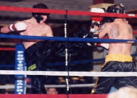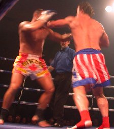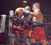 In bout number 4, the size steps up to the Light Heavyweight MuayThai Division. The heavy favorite here will be #1 IKF Ranked Ben Dauck (Left) of Milwaukee, Wisconsin, USA. Dauck is well known to the IKF pages here for one main thing... WINNING! His record is strong at 9 wins with a draw and no loses. OK, maybe 1 other thing too, he's the raining 2001 IKF US National Champion. But Dauck's opponent could care less what he's accomplished already. He's only concerned with what Dauck plans to bring to the ring Saturday night. Although he may be looked at as an underdog, #2 IKF Ranked Cruiserweight Charles Pemble of Marquette, Michigan, USA is more than ready to "Bring It ON" against Dauck. Pemble enters the ring with less experience posting a record of 3 wins and 2 loses. At last years 2001 IKF US National Championships, his brother Dan came home with a National title and Charles was denied when he lost his title bout to one of Dauck's team members, Derek Yuen by majority decision, 30-27, 30-26 & 28-28. Think there may be some redemption in mind? You bet there will... Expect to see Sir Charles in a rage!