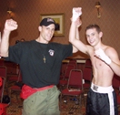 In 1999, Walls launched AggressionTV.com and began streaming entire Martial Arts Events over the Internet such as HOOKnSHOOT, World Extreme Fighting, and SuperBrawl. A year later he launched AggressionRadio.com and RealityHosting.com began attending events live and streaming the live audio play by play over the Internet for fans to listen in around the world. The most recent AggressionRadio.com broadcast for WEF XII saw nearly 2000 people listen to the live audio broadcast. Walls was introduced to the IKF by IKF Georgia Promoter and Trainer James Corbett (Right). Corbett hosted this years IKF South East Regional Tournament which fielded the largest participation of all the regionals in America leading up to the National Finals. Unfortunately Corbett won't be able to attend the National Finals since he and his wife are expecting a baby. Corbett's event was well publicized here on the IKF pages and according to Walls, the event set some new listener records as over 2,300 listeners tuned in to hear the Live Broadcast of the Tournaments Saturday night Finals. Steve Fossum, IKF World President, (Left) says in regards to the broadcast, "Johnny to us is a valued part of IKF Kickboxing and the IKF World TEAM! With his technology we'll be able to bring live updates of the 2002 USA National Finals to fight fans around the world. We'll be talking about a lot of things on the broadcasts, not just the Nationals. We'll discuss past Champions, events and the 10 year anniversary of the IKF. With that as a topic, we'll have plenty of conversation that will interest fans." As mentioned, the families of the 2002 USA National Finals competitors will be able to tune in on AggressionTV.com. Mixed Martial Arts fans who regularly follow AggressionRadio.com will be introduced to IKF Kickboxing once again. Updates regarding the broadcast will be posted here on the IKF news page later in the week as well. To tune into this broadcast simply go to