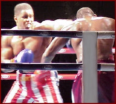 In case you haven't seen it, former IKF USA National Amateur Champion Carter Williams (Right) of Modesto, California, USA has a big feature article inside this months Ultimate Athlete Magazine. At the 2001 IKF USA Nationals, Williams first faced 6'4", 259 lb John Grantham of Athens, Georgia, USA. Williams defeated Grantham by split decision 29-28, 29-28 & 28-29 to advance to the final. In the final the next day, Williams defeated previous champion Kurt Hasley by unanimous decision, 29-27, 29-27 & 28-27. Williams turned pro last year and has never looked back. In all, (Amateur & Pro) he has compiled a combined fighting record of 24 wins, 6 loses and 2 draws that includes kickboxing, boxing and MMA bouts. Williams is scheduled to be in this May's K-1 USA Qualifier Event in Last Vegas, Nevada. "I want to take K-1," said Williams of Modesto, California. "I want to go there and eventually to Japan and become the king of K-1. This is my passion and this is my whole life." Williams is trained by Gene Fields (Left) at Field's AAA Kickboxing Academy in Modesto, California, USA. To contact Mr. Fields call (209) 579-5425 or e-mail him at themonkeymaster@hotmail.com. For more about Carter, the same writer (Michael Afromowitz) that did the Ultimate Athlete article did one for K-1 USA as well. To read the story click HERE. |