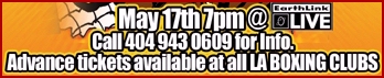 Richardson, Texas USA Asher "The Mongoose" Best (0-0, age 10) will face Mason Buzan (0-0, age 12). For those who would otherwise worry about Asher being out-gunned by an older opponent, it's not the first time for him. Asher actually has fought in a number of exhibition bouts here, not the least of which was his convincing victory last August over a heavier and taller Casper Fuego. Asher's brother, Levi, makes his return to the ring after a successful outing just days ago when he out-pointed Jerry Romero of Grand Prairie, Texas on all 3 judges cards. Levi "The Cobra" (2-0) will face Gregory "The Bear" Liflyandsky in a rematch of an exhibition bout at Southfork Ranch last Summer, which saw "The Bear" come away with a narrow 1 point decision. In another exhibition before that, the two squared-off and Best was able to stop Liflyandsky in the 2nd round of that exhibition match, so there's a bit of history here. Additionally, Nathan "Gangsta" Bagby (1-2-1) will face Gabe Ratcliffe (1-0), then of course the night's finale with Gayler toeing "the square" against Calvin Pitts in a 5 rounder. For information, call Chuck Best or Steve Goin at (972) 889-0129 or e-mail Best at sirkikman@juno.com |