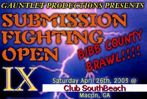 Recently, the Washington Road HOOTERS in Augusta, Georgia, provided a location for the Winter Wars 2003 after fight party. The 2002 South East Regional in Valdosta had almost 100 entrants and featured an amazing 57 matches. This year's regional promises to be as well attended and more. The kickboxing tournament will commence about 9:00 AM on June 21st. An evening fight card will feature selected kickboxing finals of the Regional tournament and ISCF mixed martial arts/no holds barred action. Valdosta's own world champion fighter Jonathan Wiezorek, also the ISCF Pro U.S. Super Heavyweight Champion, is looking to defend his U.S. title on the evening fight card.