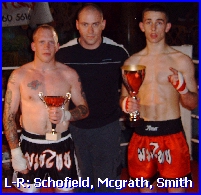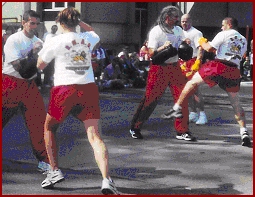 Rocklin, CA, July 29th A.K. Promotions owned by professional and amateur promoter Johnny Davis, will host this night of "Feet, Fist and Fury!" It will feature Roseville's very own IKF California Lightweight Champion Robert Elledge (R) as the main event. Elledge is a two time IKF National Amateur Tournament Champion and also holds the IKF North American Amateur Tournament Title in his division. Undefeated as an amateur, his 13 wins and no losses will be challenged by another one of California's tough contenders. (opponent not determined at press time) Elledge who's only eighteen years old, trains out of IKF Middleweight Professional World Champion Dave Marinoble's gym, also of Roseville. Approximately nine other local men, women and juniors will be "squaring off" in the 20' boxing ring against opponents from across California. Some of them include, Derek Burnsed, (Left with belt) Mike Nap, Dion Pimento, Mike Marinoble (At left in center with hat) and others from the Placer County area. (Northern, California) "This will be a first class event with lots of action, lights and music and it will be a real treat for local fight fans," says Davis. He continues, "Plans are to have the event shown delayed telecast on a local cable station. Some of the footage may also be shown on the IKF/CSS Kickboxing Series. We would like to get local businesses involved to help sponsor the event. I'm confident we can fill the venue to capacity!" This is only one of several events Davis is planning in the coming months and getting set for a busy 2004. He's anticipating larger professional shows in the near future but wants to move gradually and cautiously to assure each event's success. Those interested in sponsorship, advanced ticket reservations or for more information can reach Johnny Davis at his Office: (916) 780-7483, Cell: (916) 205-4762 or by e-mail at johnnyd@netwiz.net. Limited Seating, ticket on-sale dates and locations will be available soon. Ticket Prices are $30 in advance and $35 at the door. |