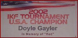 In May of 2002, Doyle won the NACSO "Elite" US Amateur Title at the new Fightatorium in Richardson, Texas by stopping his opponent in the 4th round with a crackling front-kick-jab-cross-hook combination. Doyle seemed unstoppable, and the sky seemed to be the limit for 'Team Gayler'........until June 14, 2002. When they found Red, he was lying peacefully on his couch with the television on. The only problem was that Red was not asleep in the traditional sense, but rather, he had passed-away during the night. While Red was a robust man at the relatively young age of 44, he had suffered through a series of neck surgeries (from previous martial-arts injuries), and from his late 30's-on was in constant pain. It seems that the injuries, surgeries, medications, the pain, and all of it had taken a heavier toll than anyone realized, and suddenly Red was gone. His many martial-arts students, friends and family were stunned, and the final service was a sobering reminder that none of us is guaranteed tomorrow.