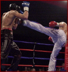 Rocklin, California, USA Friday, November 14th, at 8:PM, (doors open at 7:PM) the Rocklin Sunset Center will be transformed into a "Las Vegas Style" arena for a night of exciting Kickboxing action as some of the best fighters in California clash at center stage! Its this stage that will separate the contenders from the champions and the weak from the strong. With only one man between them and hundreds of screaming fans those at center stage will be the sole deciding factor of the other's fate. It will be a night of historical proportion and one of Feet and Fist of Fury(FFF) ! The Fight Card: Two time IKF National Champ, 2002 IKF North American and IKF California lightweight champion Robert 'Slim Shady" Elledge (Right) of Roseville will take on the tough and aggressive, Navy Seal candidate Mike Bolig of Napa, California. Bolig and Elledge are no strangers in the ring as they faced off several months ago in Fairfield, California in a "Boxing Brawl." Bolig was not satisfied with the close decision by Elledge and is eager to show the young champion he has what it takes to walk the walk in the main event of the evening! Mike "Machine Gun" Marinoble (Left) of Roseville, California is the IKF California Heavyweight Kickboxing Champ (above the waist kicks) and fights out of IKF World Kickboxing champion Dave "Mad Man" Marinoble's gym in Roseville, California. Mike will take on a determined Hector Gutteriez of Santa Rosa, California. Word has it that the 209 lbs Gutteriez plans to bring it hard because of Marinoble's novice experience and first attempt at the International Rule style which includes kicks to the legs. In another semi-main event, Dion Pimento of Roseville, California will test his skills against one of the best middleweights the State of California has to offer, Floyd Savoy of San Francisco, California. Floyd is coming off a recent victory over Derek Burnsed of Roseville who had to drop out of this event due to some old injuries that needed more time to heal. Some are predicting the Savoy/Pimento bout to be one of the best of the evening! A fight that may be one of the night's big surprises and will test both men - 150 lbs. Johndell David of Concord, California has an impressive record of 8-1 and will have his feet and hands full with a man who has knocked out every opponent in all of his eight fights except the two who defeated him. Dareo Guzman of Las Vegas, Nevada will go for another knockout in this International Rules (leg kicks) Kickboxing match! In the only woman's bout of the evening, Molly Pelton of Newcastle, California will do battle with Casey Nolan of San Luis Obispo, California. Additionally, the "FFF" card will have more exciting bouts such as: |