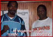 South Carolina, USA The first pro fight of the evening will be between Peyton "The Artist" Russell and Luis "El Diablo" Rodriguez. Peyton is originally from Minneapolis, Minnesota but now resides in Simpsonville, South Carolina, USA. This will be Peyton pro debut. His amateur record is pretty extensive with 34 wins, 6 losses and 9 wins by KO/TKO to add to that winning record. At the 1999 IKF National Tournament Peyton made it to the finals only to lose to Zach Day of Augusta Georgia by TKO at 1:56 of round 2. At the 2000 IKF National Tournament Peyton again made it to the finals. However there, he lost to a young and talented 16 year old Stephen Thompson while Peyton was 30 by unanimous decision, 30-23, 30-24, 30-24. Finally at the 2001 IKF National Tournament Peyton won the IKF Gold when he defeated Eustorgio Gama of Lake Zurich, Illinois by unanimous decision, 30-28, 30-27 & 30-27 to win the FCR Middleweight National Tournament title. At the 2002 IKF National Amateur Tournament in Davenport Iowa Peyton successfully defended his title when he defeated Travis Buchlolz of Eau Claire, Wisconsin USA by unanimous decision 30-27 on all 3 judges cards. At the 2002 IKF North American Amateur Tournament in South Carolina, USA Peyton won the first North American Tournament title when he defeated Shannon Hudson by majority decision, 50-45, 48-48 and 48-47. "El Diablo's" is from Martinez, Georgia, USA and is ranked 12th in the IKF Pro FCR Super Middleweight division. He has a record of 13 wins with 3 losses. This fight is set for six rounds in the Light Heavyweight (172 lbs-179 lbs) division. This should be a match-up of speed and stamina vs speed and stamina which will make for a busy and entertaining fight. The next fight will be between two powerhouses. Raoul "The Axeman" Doucet will be fighting 6'6" Dan "Son of a Preacherman" Erickson. Raoul hails from Hawkesbury, Ontario, Canada and is trained by Giovanni Mucciarone. His record is 14 wins, 3 losses, 1 draws with 7 wins coming by KO/TKO. He is the current IKF Super Heavyweight North American Champion and won the title on April 26th, 2003 in Glenville, West Virginia, USA when he defeated Mike Sheppard of Palestine, West Virginia by unanimous decision. He defended the title on May 15th, 2004 in Simpsonville, South Carolina where he stopped Ronnie Copeland of North Carolina due to an nonintentional foul in round 9 of the scheduled 10, (Doucet's knee was coming up on his kick and his challenger Ronnie Copeland ducked into it and his knee hit Copeland in the temple knocking him out) The bout decision went to the score cards where Doucet was clearly ahead, 87-84, 88-84 and 86-85. Doucet lost his bid at the IKF Super Heavyweight World title on September 11th, 2004 in Atlanta Georgia, USA when he lost to Mark Selbee of Atlanta, Georgia, USA by TKO at 1:09 of round 1. Doucet is eager for a possible rematch but needs to get past Erickson first. Erickson (Right) is from Duluth, Minnesota and is now trained by Bill Lassi. Dan's pro record is 7 wins, 1 loss, 1 draw with 5 wins coming by KO/TKO. This was after having an excellent amateur career under the guidance of former IKF Pro FCR Super Heavyweight World Champion Mike LaBree. As an Amateur Dan won 21, lost 1 and won 11 of those 21 by KO/TKO. While an amateur Dan won back to back IKF National Amateur Tournament titles. At the 2001 IKF National Amateur Tournament Dan won both his Saturday prelim bouts and went on to win the FCR Heavyweight Title on Sunday with a victory over Wil Joseph of Dallas Texas by TKO at 1:18 of the 2nd round. At the 2002 IKF National Amateur Tournament Dan successfully defended his 2001 FCR Heavyweight Title when he defeated Mark Mortensen of Lake Zurich, Illinois by unanimous decision 29-26 on all 3 judges cards. Both are big, both are strong, both have known that this match-up was inevitable. Somebody is going to be put to sleep in this fight. This fight is also scheduled for six rounds and is a match up of power vs power. The final pro fight will be a rematch between Stephen "Wonderboy" Thompson (Left) and "Kadir". Kadir (Right) trains under Tom Ingardiola from West Babylon, New York. The Wonderboy's pro record is 3 wins with all three coming by the KO/TKO and if you are not familiar with his past, Click Here. Kadir has a pro record of 13-6-1 with 5 wins coming by KO/TKO. They first fought in May of 2004 with the Wonderboy stopping Kadir in the fifth round with solid body shots to the liver. Kadir went down several times from those body shots until referee Dan Stell finally had to step in and stop the fight. Word has it that Kadir had never been stopped. Before he stepped out of the ring he asked Thompson for a rematch. Well one year later his wish will come true. Some felt Kadir took the Wonderboy to lightly there first time out. He is sure he will not make the same mistake twice. This will make for a GREAT rematch of skill vs determination. For more info please contact Upstate Karate, Inc at (864) 967-3930 or check out their website at www.upstatekarate.com |