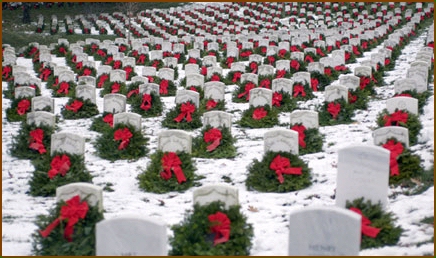 These wreaths -- some 5,000 -- are donated by the Worcester Wreath Co. www.worcesterwreath.com of Harrington, Maine. The owner, Merrill Worcester, not only provides the wreaths, but covers the trucking expense as well. He's done this since 1992. A wonderful guy. Also, most years, groups of Maine school kids combine an educational trip to DC with this event to help out. Making this even more remarkable is the fact that Harrington is in one the poorest parts of the state. 2006 will mark the 15th anniversary of holiday wreaths being sent from the State of Maine to Arlington National Cemetery. Each year the folks at Worcester Wreath Company make and decorate wreaths that will adorn over 5,000 headstones of our Nation's fallen heroes - in what has become an annual event coordinated with the Cemetery Administration and the Maine State Society. Row after row of bleached white stones, with evergreen wreaths and red bows it is a stirring image to commemorate those who made the ultimate sacrifice for our country. What started over 15 years ago, as one's man's dream to honor Veterans with Maine wreaths for the holidays, has become an annual event cherished by many. Humbled with a new understanding about the impact the Arlington Wreath Project has made, not only in honoring the dead, but recognizing the sacrifices of the living, Morrill Worcester - President of Worcester Wreath Company committed himself to doing more, by reaching out across the country. |