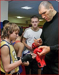 In any boxing club, sweat is part of the ambience, but in Russia, the sweat factor usually scores a one-two punch to the nose right from the doorway, reminding all who enter of what it smells like to be a nastoyashi muzhik, a real Russian man. On the wall of a small neighborhood boxing club in northwest Moscow, there is a huge, grainy photo of Stanislav Stepashkin, the 1964 Olympic featherweight champion who was one of Russia's early claims to international boxing fame, and a real Russian man if there ever was one. Stepashkin agreed two years ago to serve as president of the club, and the neighborhood boys here renamed it in his honor. These days, another photo hangs on the dank walls next to Stepashkin's, and while the picture isn't bigger, the man assuredly is: Nikolay Valuev, (43-0 with 31 wins by KO!) crowned in December as Russia's first World Boxing Assn. Heavyweight Champion. Valuev himself strode into the gym recently during his triumphant return to Russia after the title bout, in which he defeated American John Ruiz on a controversial decision in Berlin to become the tallest (7 feet) and heaviest (323 pounds) World Champion in history. He's so big he usually steps into the ring over the top rope so big that the adolescent pugilists at the Stepashkin Club would have barely been able to land a hook as high as his belly, if they had the nerve to try. Most just craned their necks and gawked, or melted into nervous grins. "I don't know about the world, but here in Russia, he's been very famous for a long time. For the kids here, this is such an emotional thing," said Alexei Barsukov, a former trainer who came back for the spread of iced tortes, fresh fruit and champagne laid out in the manager's office in Valuev's honor. In the rest of the world, Valuev, 32, is known as the "Beast from the East" (promoter Don King wants to call him "King Kong" when he defends his title in the U.S.), but in his homeland, he is more often known as the "Russian Giant." His brain is played up here as much as his brawn, a boxer who reads Tolstoy and writes poetry to his wife? - along with his diffident, quiet demeanor. "You can't impose your own manner of fighting on him, and that's because of his life position. He's very calm, and very, very controlled," Barsukov said. Added Vladimir Grachev, boxing coach at the club: "You have a person born with such a physique once in a hundred years. Such a build, and such an intellect Russia may not get another such man in our lifetimes." American Ruiz thought he had the fight won with his tactics of grabbing and jabbing a man 85 pounds heavier than his 238 pounds. He slipped in a few punches and tied up Valuev. But the judges' decision changed everything. While one judge scored the fight even at 114-114, the other two gave Valuev the edge at 116-113 and 116-114. Though the crowd booed, Valuev was thrilled at the judgment. "I had to wait 12 years for this and now it has happened," the 32-year-old Valuev said. "It's fantastic." Valuev only did real damage with one punch, in the final round no less, but it appeared to be enough. He caught Ruiz on the chin with a straight left that wobbled the champ. Ruiz clinched his way to the end of the fight. Valuev began landing jabs in the first round and started throwing combinations in the seventh. In the ninth, he even danced a bit. The big Russian improved to 43-0 with one no decision, while Ruiz's record dropped to 42-6-1. "Boxing is the only sport where you can get robbed without a gun," Ruiz said. "My promoter Don King should do his job and get a rematch." "The WBA world title belt doesn't fit around my