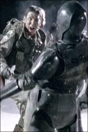 Special to IKF - www.videobusiness.com - Sci-fi military movie made for gamers: Eleven Time World Champion Kickboxer Don "The Dragon" Wilson is a Dragon no more. He has shed his old nickname, which he used in a slew of action straight-to-tapers in the '90s, for this by-the-numbers sci-fi war movie in which he is one of the last remaining human soldiers who must combat the "Drone Army" that has taken over America. Wilson has a high-tech gun that speaks to him in a female voice and survives numerous explosion-laden battlefield sequences, but the movie's only twist is that he is eventually joined by an attractive blonde warrior, played by Battlestar Galactica's Katee Sackhoff. Shelf Talk: Wilson is well known to action fans, as are supporting stars Steven Bauer (Scarface) and Keith David (whose voice is heard in everything from Ken Burns' The War to videogame Halo 3), but Sackhoff is the biggest lure for sci-fi devotees. Gamers are the target audience here, as The Last Sentinel is designed to look like a videogame, with Wilson and Sackhoff killing a humongous amount of enemy attackers. Also appearing in the movie as the Last Human Cop is former World Champion kickboxer Jerry Tremble.