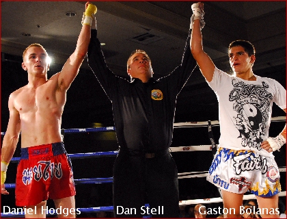 Gaston Balonas VS Daniel "Hitman" Hodges One of the featured title bouts will be a REMATCH between Gaston Balonas of Dublin, CA (Left) who is trained by well known Kirian Fitzgibbons and Daniel "Hitman" Hodges (right) of the Rocklin Kickboxing and Boxing Club. In their last bout on July 2nd of this year in front of a packed house of screaming fans, these two top contenders gave the fight of the night as they etched out an exciting draw over four rounds. Apparently judges gave Balonas the first two rounds and Hodges rounds 3 and 4. In a four round fight, ties are pretty common. This time around, the fight will be for five grueling rounds and one can only imagine that these two talented fighters will start at round 5 from their last fight. One of them will walk out the new IKF California State Muay Thai Welterweight Title...its just a matter of who wants the legacy more! This fight should again have fans on their feet cheering both young warriors on to victory! Who will win? There are predictions coming out of both camps but with the fireworks from the last fight, one could guess that someone is going down for the count! :) Get ready for a war!