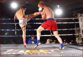 Daniel Hodges of Rocklin, CA and Gaston Balanos of Dublin, CA will be fighting for the IKF CA Welterweight title but are not the main event on the upcoming show. However, if you witnessed their last fight that ended in a draw, action packed with toe to toe action, you would know that this is not a fight you want to just hear about later, but instead, you will want to be on the front row of this brawl for it all! Although only the semi main for this event, it will be a fight with main event caliber written all over it! It's evident in Balanos and Hodges' demeanor that neither of these guys are afraid of each other but both have high regards for the other's ability which will make for some awesome fireworks in the ring! Left: Hodges lands a kick on Balanos' chest Gaston gave a call to AK Promotions' office the other day...after some prodding from Hodges camp to make it clear "That Daniel better be ready for 5 hard rounds and be ready for a good butt kicking!", he made it clear of his intentions to take the title back to Dublin. However, on the other hand, Hodges has his own plans to bring the title home himself and is not shy about his claim for the IKF Gold. He's been training hard and inviting many of his friends, family and military associates to witness the battle. Hodges, like Balanos, makes it clear to everyone that this will be a great fight and one of these warriors will truly go down for the count if he gets careless, and the look in Hodges eyes is clear that he means what he says. Balanos is a skilled Muay Thai technician while Hodges is more of a brawler who is very strong, hard hitting and improving as time goes by. The results could go either way...but one thing for sure, the fans will get their money's worth out of this fight alone...get ready for a war! |