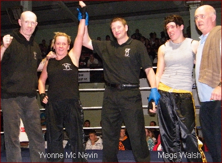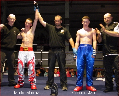 The Dragons Lair Kickboxing Gym in Kilkenny which only opened its doors about 12 short months ago had its first IKF Sanctioned Full Contact Kickboxing promotion in Kilkennys O' Loughlin Gaels GAA Club on Sunday. If they were out to make a statement, they certainly did that and more! Promoter Bernard Doyle and his team put on a top class show with an action packed fight card that was witnessed by over 800 enthusiastic and very vocal fight fans. This show had junior fighters, senior fighters, an amatuer IKF All Ireland Title fight, International Bouts (both Amatuer and Professional) and all the phizzazzz of a well organised event! Most of all, in these dark economic times, it had extremely well priced tickets designed to give the fans more value for their money and take the sting out of the cost for the pure entertainment. it was an offer for hard pressed families and fight fans that was greatly appreciated by all. The show went smoothly and all the Judges, Referees and Officials worked hard and delivered good verdicts with no arguments from either corner. One fight that stood out was between two young ladies who had the place Rumbling and on the edge of their seats. The result was a draw and they were Megan Maher from Pat Rockets Gym in Waterford and Helen Meagher from the Dragons Lair Camp in Kilkenny. Another cracker of a contest was the IKF Middleweight fight which was for the recented vacated belt. This was between local hero Clayton Delaney and Waterford fighter Sean O' Neill. These two had a little bit of history as Delaney had Knocked out O' Neill in Waterford about 4 months ago. This fight was about pride as well as the IKF belt that seemed to spur O' Neill on to a closely fought victory to win the Title. However Clayton Delaney can certainly hold his head up high as he had O' Neill on the back of his heels and covering up several times throughout the 5 rounds. IKF Representative Mr. Pete Foley commented that it was a first class and extremely competitive fight that could have been a main event anywhere on the planet. Then of course you had the two main events which certainly didn't fail to deliver as John Paul Soammes and Vinny Di Ruscio both knocked out their Welsh opponents, Soammes with a left hook body shot in the 4th and Di Ruscio with a spectacular head kick at the end of the 1st round. | ||||||||||||||