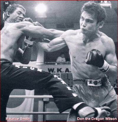 Sickness... Under these WKA Rules, even though it was a "Leg Kick" bout, there was still a required minimum of 8 Kicks landed above the waist by each fighter in each round. If a fighter didn't make their 8 kicks in a round, they lost points when they did not get their 8 kicks in. Sadly for Alexio, it seemed his strategy was more so to get inside and box Wilson toe to toe, which was a big reason he missed his minimum kicks which cost him points in those rounds and ultimately the decision of the bout. Watch when the fighters come to center ring for the pre-fight talk with the referee. The guy entering to the right is our very own good friend and IKF World Ambassador, Brooks Mason, who was don's trainer at the time... In October that same year, Wilson vacated the WKA Super Light Heavyweight World Title he won against Alexio since like in the Smith victory, he had no desire to fight above 180 lbs. to defend the title. When 1984 came to an end Wilson was awarded "Fighter of the Year" by Black Belt Magazine. Unlike today when everyone is giving out belts and awards like candy, Black Belt Magazine was "THE" expert of such awards back then, That year Wilson fought and defeated 3 World Champions under three different rule styles in a span of 9 months that included;