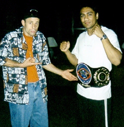 Dave Marinoble (Left) and Tommy Kimber (Right) Pose at the press conference before their IKF Middleweight World Title bout in Malaysia 2 weeks ago. The bout was Kimber's first defense of his title he won in May of 1999 by unanimous decision over Curtis Bush. Marinoble stopped Kimber in the 8th round to become the New IKF Pro Middleweight World Champion. A full story is ready to go on this event but we've been waiting for the fight puictures from Malaysia. Sorry for the delay... Watch for all the details very