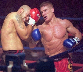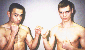 IKF Milwaukee, WI, USA In Milwaukee, America's colosseum of kickboxing, onlookers deem him as "Gladiator." Jason "Gladiator"Johnson (Right in photo) continued his reign of triumph before a sold-out crowd with a stunning win over Kansas City's Jeff "Big Diesel" Ford (L). Both Johnson and Ford have been touted as top American prospects, but tonight Johnson proved to be superior in a dramatic fashion. The first round was punctuated by Johnson landing an impressive head kick, which dropped the ever-formidable Ford. Ford beat the standing eight count and continued to fight back, but Johnson's knee attacks and kicks prevented Ford from establishing a consistent offense. Ford was valiant throughout the bout, but Johnson remained relentless, methodical. The bout was rightfully ended in the third round by referee Al Wichers ; Johnson was landing numerous kicks, punches, and knees on a seemingly unresponsive Ford. Below are the results from the action-packed undercard. Thanks to the sponsors and great fans for making this yet another spectacular "kaboom-kabap" evening of kickboxing! Don't miss Rumble in the Rave II, set for Saturday, March 24, 2001! Be sure to check the IKF News page or www.milwkick.com for more information. |