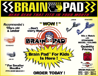 Since the forming of the IKF, Fighter Safety has always been an issue with us. As some of you know, a few years back we introduced a new "Brain Pad (mouthguard...but don't just call it that...) guard from a company called Wipss. Over the years Wipss. has become more and more a part of the IKF. At this years (2001) IKF/Ringside National Amateur Tournament, Wipss. donated over 200 mouth guards for all of the National Finalists.