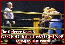 Even when Young dropped her gloves and stumbled to her corner while members of the audience called for the bout's end, the referee never even stepped in to break the two to separate. He just stood by and watched Kobie PUMMEL Young! Kobie landed punch after punch on Young who was visibly out of shape (At 240 lbs) and spent much of the fight backed into a corner trying to defend herself as best she could. At one point, the two fighters fell to the canvas and Promoter Art Dore yelled over the PA System, "A real cat fight!"