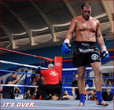 obviously gave way. The bout was sanctioned by the ISKA and the WKA. The ISKA